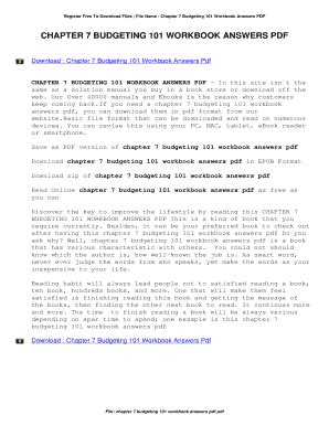 Read Online Chapter 7 Budgeting 101 Answers PDF online is a convenient and frugal way to read Chapter 7 Budgeting 101 Answers you love right from the comfort of your own home. Yes, there sites where you can get PDF "for free" but the ones listed below are clean from viruses and completely legal to use.